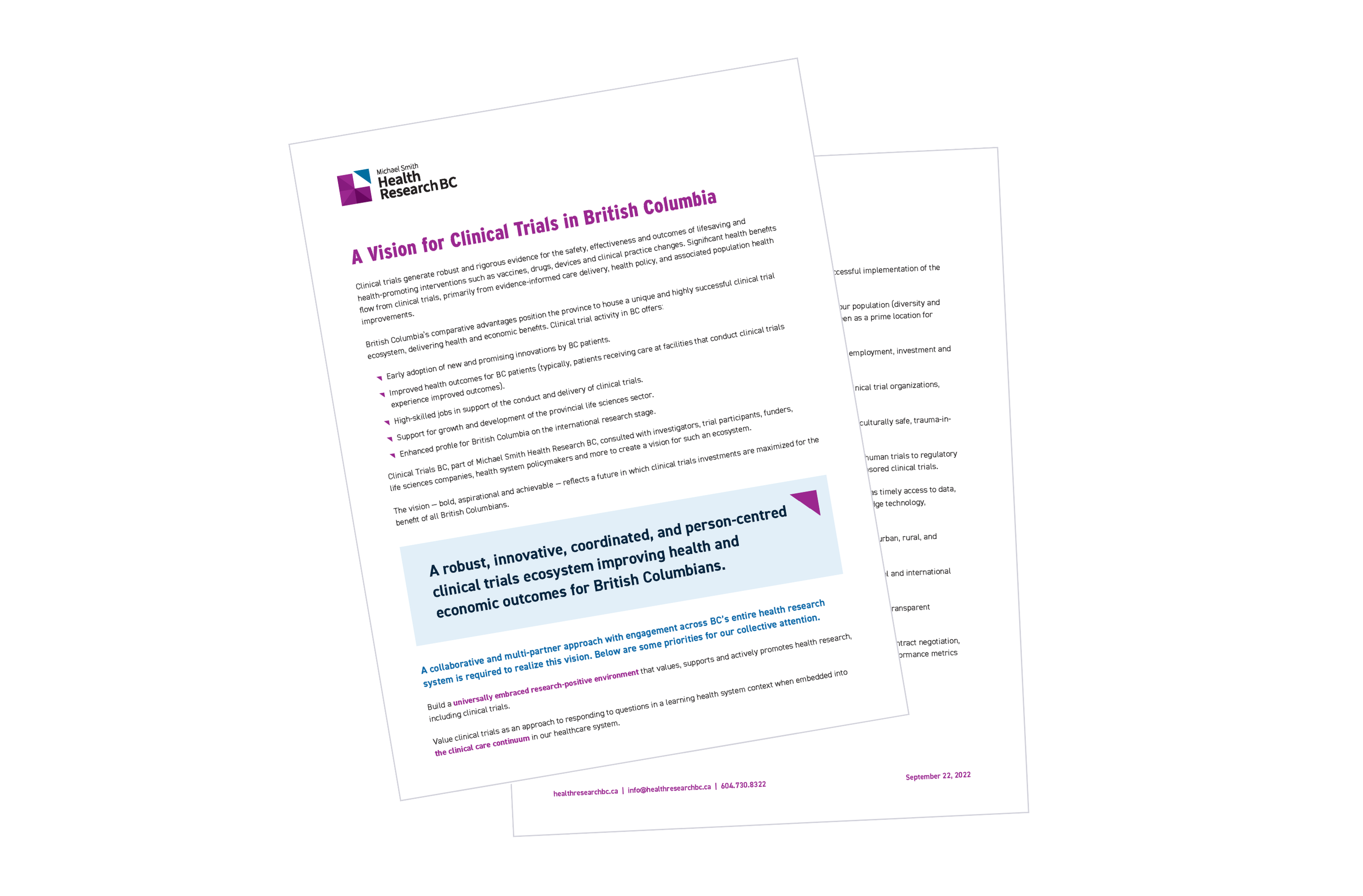 A robust, innovative, coordinated, and person-centred clinical trials ecosystem improving health and economic outcomes for British Columbians.